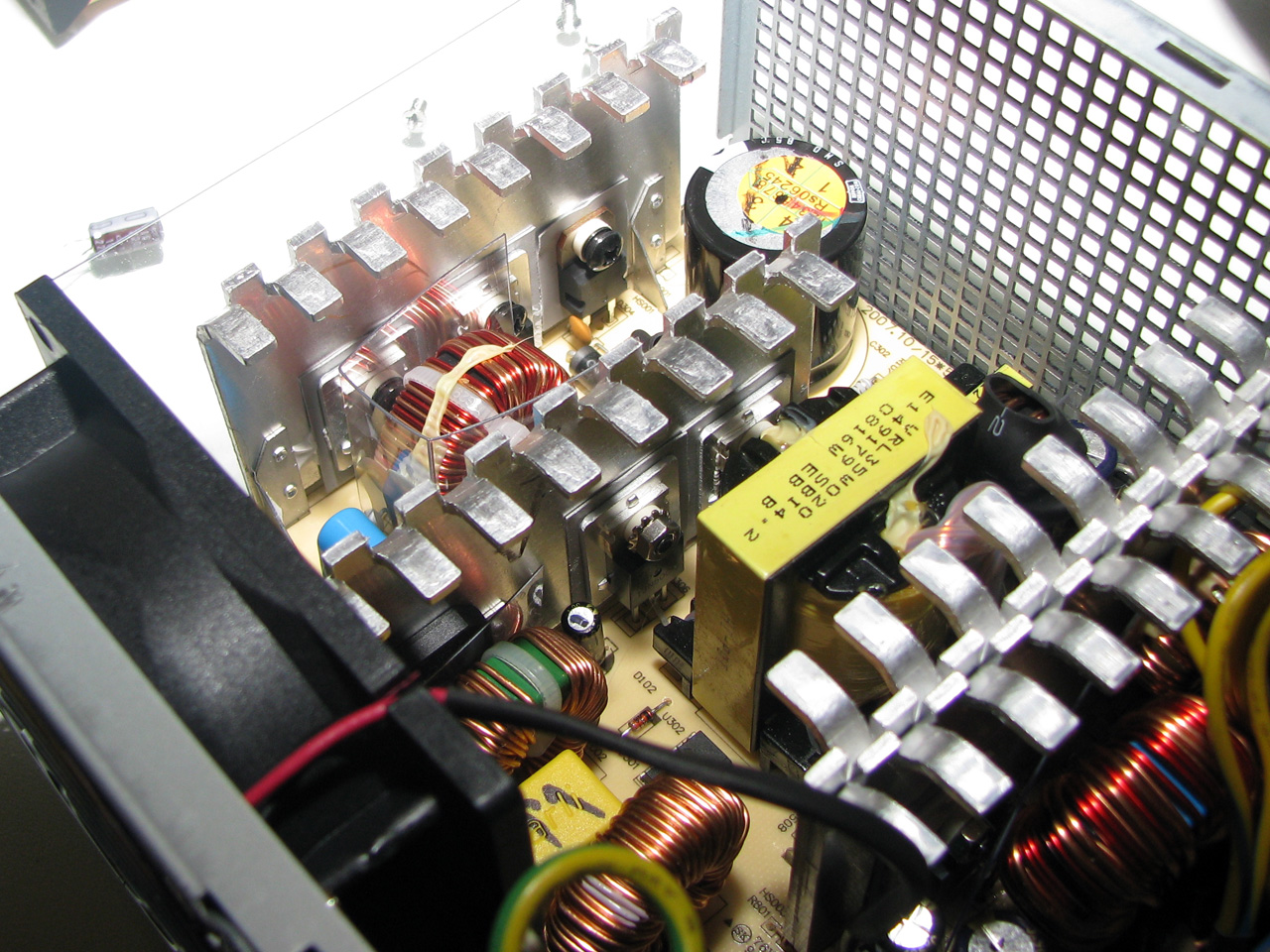 La EarthWatts est donc en réalité une alimentation Seasonic qui partage 95% de ses composants internes avec la fameuse S12-II considérée (à raison) par beaucoup comme l’une des meilleures disponibles sur le marché. Bien sur, pour réduire les couts, quelques sacrifices ont été réalisés : remplacement du condensateur d’entrée par un modèle spécifié à 85°C au lieu de 105°C (mais toujours japonais !), changement du ventilateur pour un 8cm, suppression du condensateur solide de filtrage sur le rail +12V et … c’est à peu prés tout ! Au final, on obtient un bloc d’excellente qualité, qui se comporte très bien dans tous les tests que nous avons pu effectuer (rendement, qualité du courant, protections, …etc.) et qui n'a pas à rougir face aux Corsair et autres Enermax.